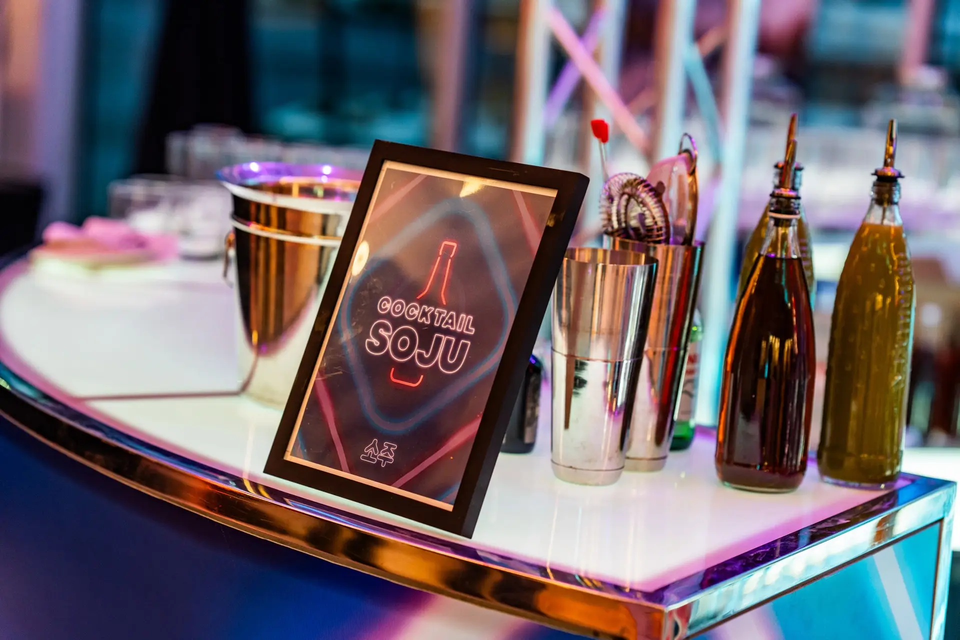 Ambiance chic à la coréenne, avec néons, projections immersives et bars lumineux personnalisés. Le menu, proposé était entièrement composé de spécialités coréennes. L’événement a accueilli la populaire DJ K-POP DJ Yuka K, venue spécialement de Toronto ! Des danseurs K-pop pour ajouter un effet WOW!