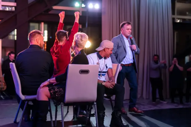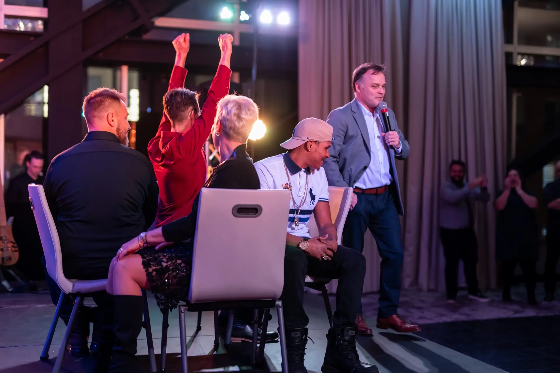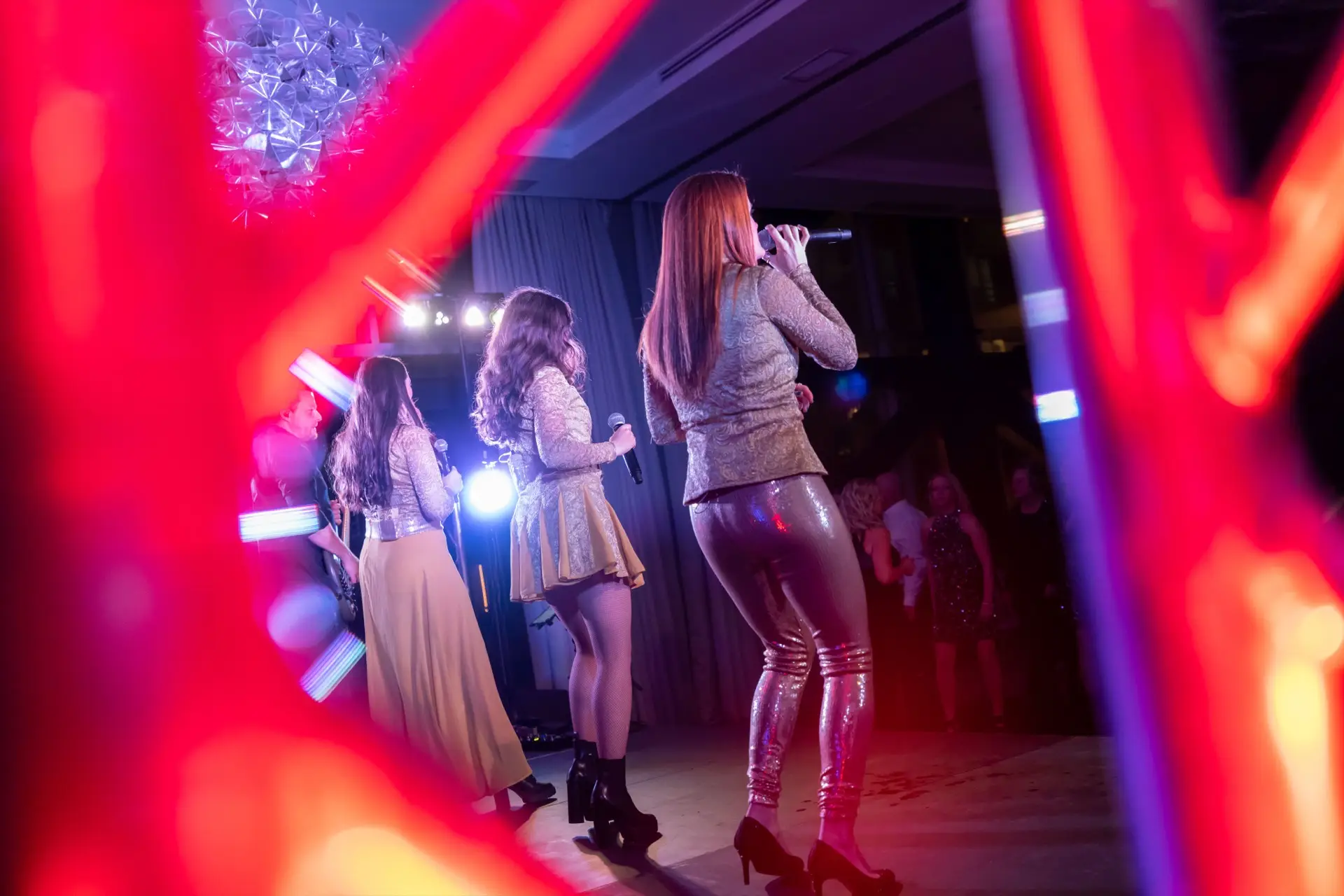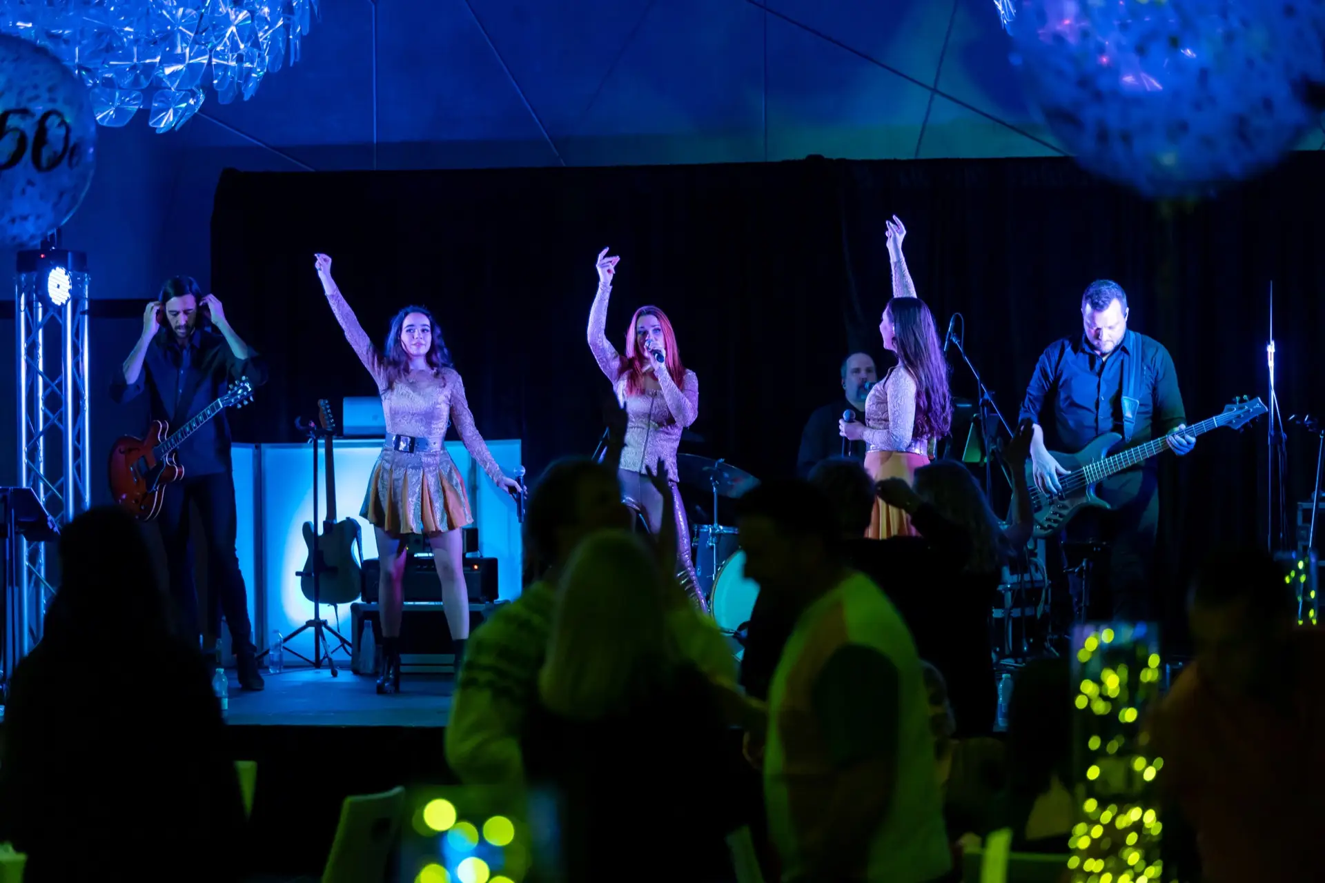 Le lieu, décoré avec élégance dans des tons festifs d’or et de blanc, offrait aux invités une atmosphère conviviale. Des ballons imposants, des centres de table éclairés et une scène accueillant le groupe Bond Girls ont transformé l’environnement. L’excellent repas servi par l’équipe de l’hôtel Humanity a également contribué à rehausser cet événement.